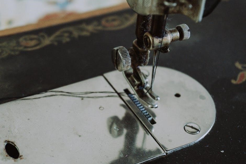 Singer sewing machine manuals emphasize the importance of proper tension. Adjusting the upper and lower tension dials balances thread distribution, preventing looping or puckering. Incorrect tension leads to weak seams or thread breakage. Manuals illustrate how to test and fine-tune tension using scrap fabric, ensuring balanced stitches. Mastering this skill is crucial for achieving professional-quality results.
